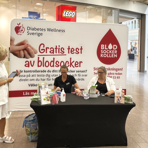 Information om diabetes och gratis blodsockerkoll av sjuksköterska på plats. OBS! Det är dock viktigt att inte äta eller dricka något en timme före mätning. Vatten går dock bra att dricka.